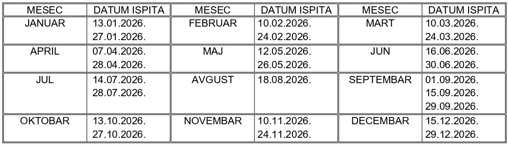 RASPORED POLAGANJA ISPITA ZA VOZAČE ZA 2026. GODINU